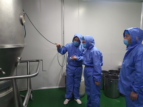 2020年3月18日,陈仓区副区长刘隽一一行莅临陕西紫光辰济药业,对企业复工复产情况进行调研指导,常务副总肖红星等主要领导陪同。 调研组一行参观了公司中药饮片库、前处理及固剂车间,了解药品生产过程、操作规范,及疫情期间厂区的防护工作,陪同人员进行详细讲解。 座谈会上,刘区长听取了企业复工复产过程中存在的困难问题。强调在疫情的特殊时期,要严格对照国家标准要求,科学精准落实好疫情防控措施,陈仓区政府会大力协助企业全面落实各项惠企政策,全力支持企业复工复产,为推动中医药高速发展提供坚实的实体经济支撑。
